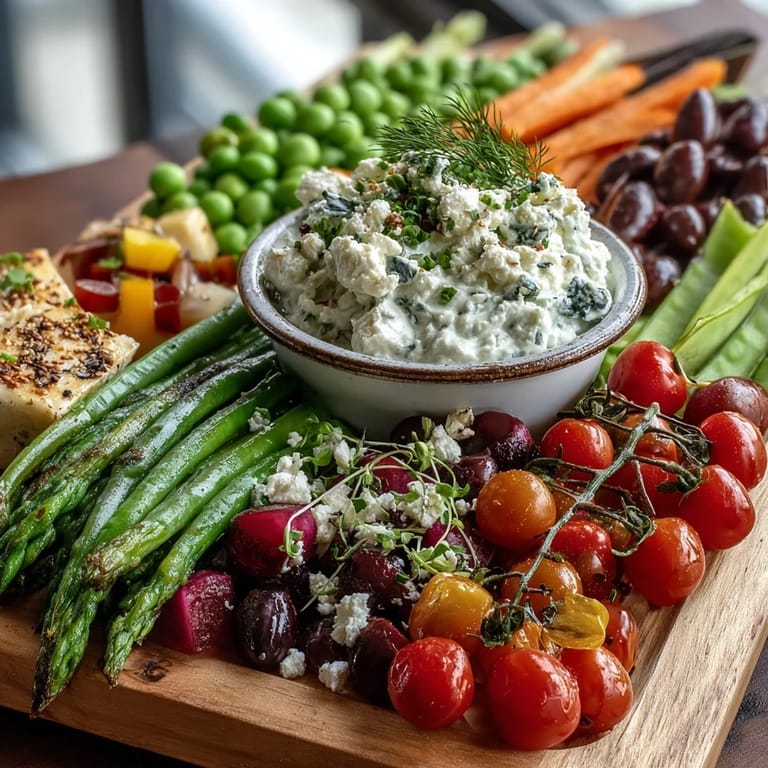 Der Frühling zu sein bedeutet, mit dem zu arbeiten, was gerade wächst, und dieses Brett feiert genau das. Es gibt einen Grund, warum Radieschen und frische Erbsen zusammen gehören—sie sind in derselben Jahreszeit lebendig und sprechen auf einer primitiveren Ebene zu uns. Wenn du es im Sommer machst, ersetze einige Gemüsesorten durch Paprika und grüne Bohnen; im Herbst könnten Rote-Beete-Scheiben und Kürbis Platz nehmen. Das Brett anzupassen ist nicht ein Fehler—es ist das Punkt.