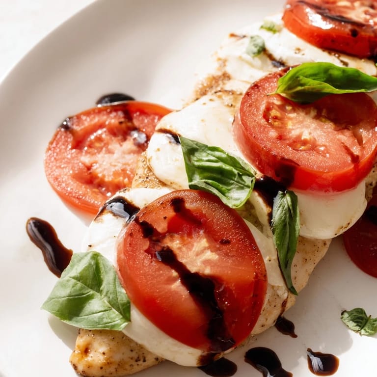 - Streue das frische Basilikum über das Hähnchen und träufle die warme Balsamico-Glasur darüber. Serviere sofort, solange alles noch heiß ist und der Käse zart verläuft.