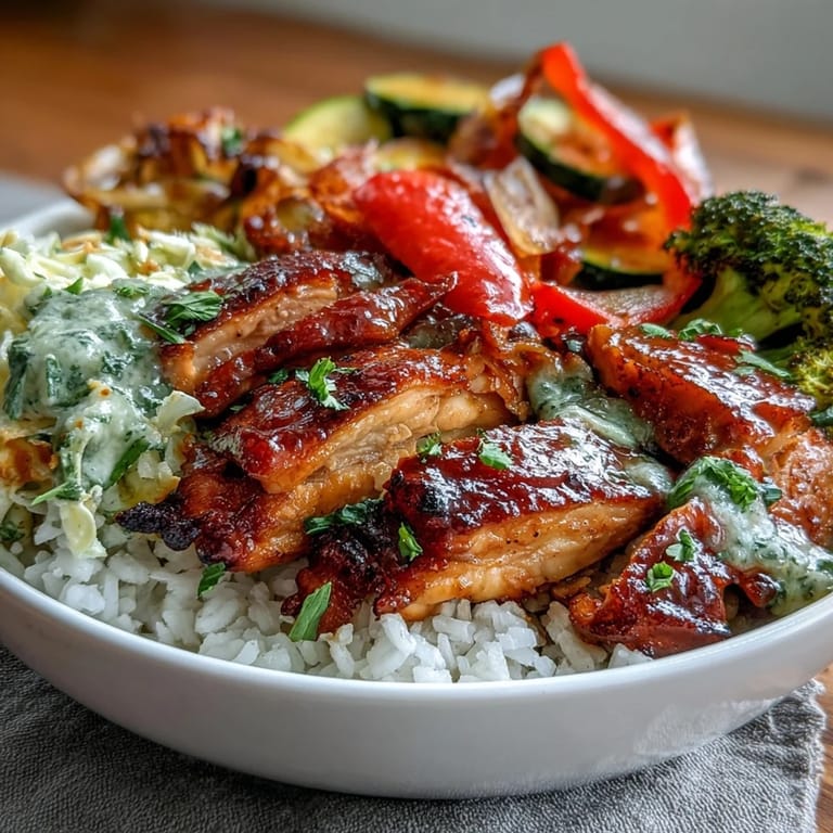 Merken Eines Nachmittags stand ich in der Küche und starrte auf ein Glas BBQ-Sauce, das ich zu Hause hatte, während meine Freunde in einer Stunde ankommen würden. Ich wollte etwas machen, das sättigend wirkte, aber nicht wie ein typisches Abendessen aussah. Die Idee kam mir, als ich ein paar Hähnchenbrust und gekochten Reis im Kühlschrank sah, und plötzlich war klar: Ein Bowl würde alles zusammenbringen, alles Bunte und Knackige, das ich brauchte. Seitdem ist dieses Gericht mein Rettungsanker geworden, wenn ich schnell etwas Schönes auf den Tisch bringen möchte, das sich anfühlt, als hätte ich Stunden daran gearbeitet.