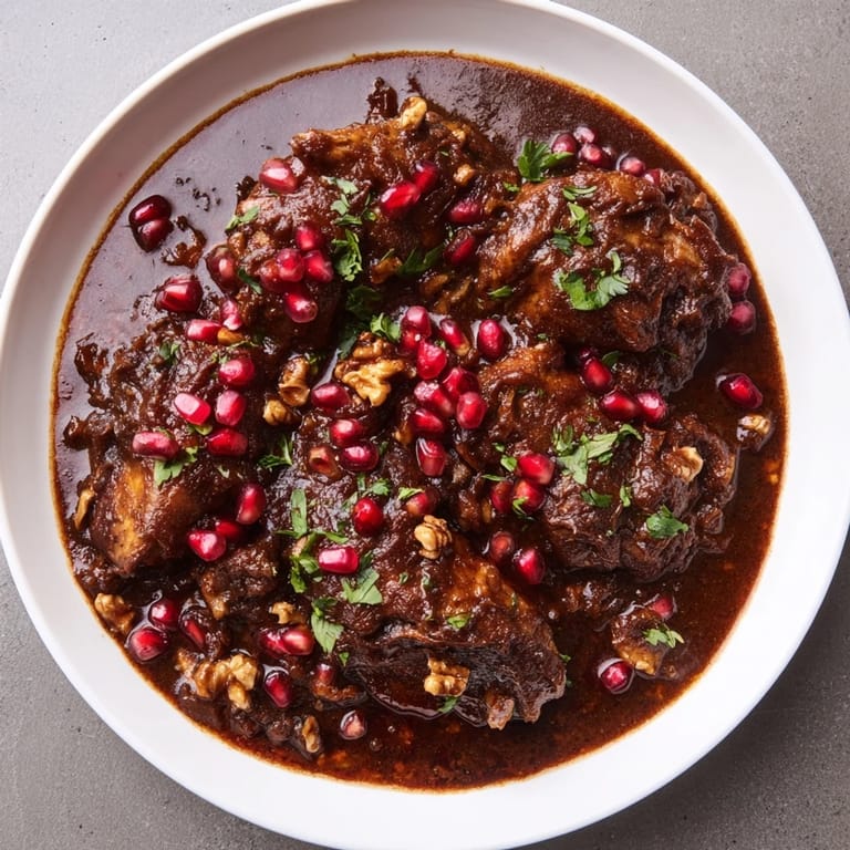 Merken The first time I tasted Fesenjan, I was sitting cross-legged in my friend Maryam's kitchen in Tehran, watching her stir a pot that smelled like autumn itself—tart pomegranate mingling with toasted walnuts and warm spices. She didn't fuss much, just moved with the quiet confidence of someone whose mother and grandmother had made this same dish a hundred times before her. That afternoon, I learned that some recipes aren't just instructions; they're conversations across generations, told through taste.