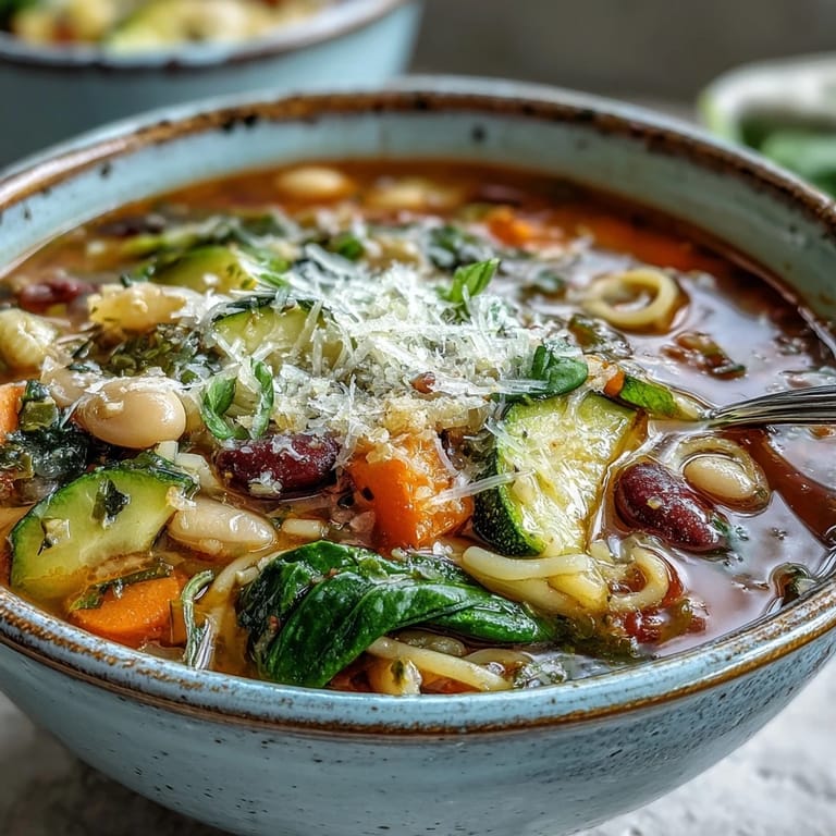 Letzten Winter, als ein unerwarteter Schneesturm unsere Pläne durchkreuzte, wurde diese Minestrone zu unserem Rettungsanker. Ich warf alles, was der Kühlschrank hergab, in den Topf, und der Duft, der sich im Haus verbreitete, lockte sogar meinen sonst so schwer zu beeindruckenden Teenager aus seinem Zimmer. Wir saßen am Küchentisch, löffelten dampfende Schüsseln Suppe und hörten dem Heulen des Windes zu, während wir uns gegenseitig Geschichten erzählten.
