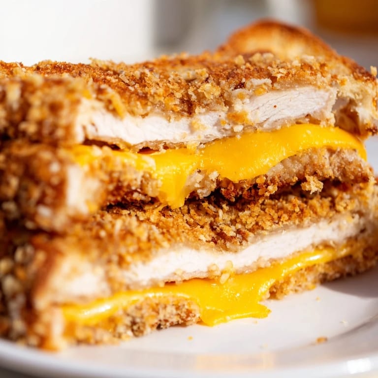 Merken An einem verregneten Sonntag, als der Kühlschrank nur Zutaten für ein einfaches Grillkäse-Sandwich hergab, beschloss ich spontan, die Sache etwas großartiger zu machen. Die zufällige Kombination von knusprig paniertem Schweinekotelett und geschmolzenem Käse war einer dieser glücklichen Küchenunfälle, bei denen alles perfekt zusammenpasste. Das erste, was aus der Pfanne kam, landete sofort auf einem Teller, und bei jedem Biss wusste ich: Dieses Rezept würde für immer bleiben. Die Textur des knusprigen Pankos mit der Cremigkeit des Käses ist etwas Besonderes.