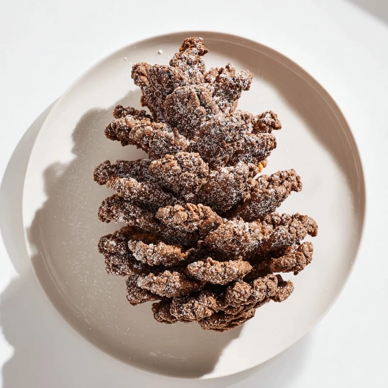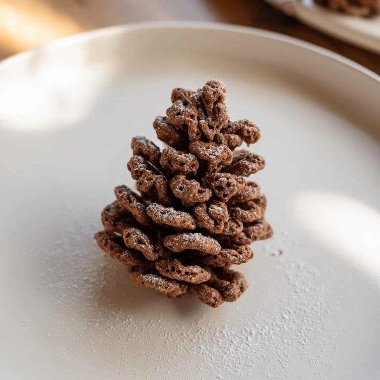 Merken Whimsical, wintry treats featuring a creamy nut butter mixture shaped into pinecones and coated with crunchy cereals—perfect for festive snacking.