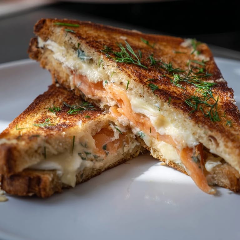 Merken Dieses geräucherte Lachs-Grilled Cheese ist mehr als nur ein Sandwich – es ist eine warme, cremige Umarmung auf einem Teller. Genieße es bei einem gemütlichen Abend zu Hause, wenn du etwas Besonderes willst.