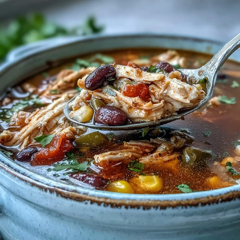 Merken An unverhoffter Regenschauer im Oktober brachte mich dazu, diese Südwestliche Truthahnsuppe zum ersten Mal zu kreieren. Ich stand in meiner Küche, starrte auf die Reste des Truthahns vom Vortag und dachte an die lebhaften Aromen meiner Reise durch New Mexico. Die Kombination aus schwarzen Bohnen, Mais und Truthahn schien perfekt für diesen kühlen Nachmittag. Als der Duft von gerösteten Gewürzen durch das Haus zog, wusste ich, dass ich etwas Besonderes gefunden hatte.