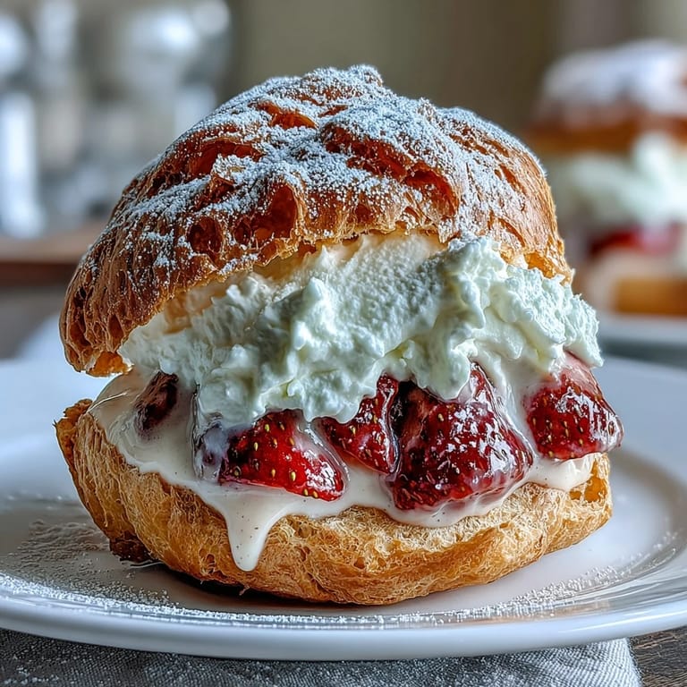 Merken Mein Freund Marco brachte diese Erdbeercreme-Windbeutel zu einem Valentinstagdinner mit, und ich war sofort verzaubert—nicht nur vom Aussehen, sondern von dem Moment, als ich hineinbiss und die zarte Süße der frischen Erdbeeren mit der luftigen Choux-Paste verschmolz. Seitdem versuche ich, diese französische Eleganz in meiner eigenen Küche zu recreieren, und jedes Mal wird es besser. Diese Windbeutel sind überraschend einfacher zu machen, als man denkt, und sie verleihen jedem Anlass sofort eine festliche Note.